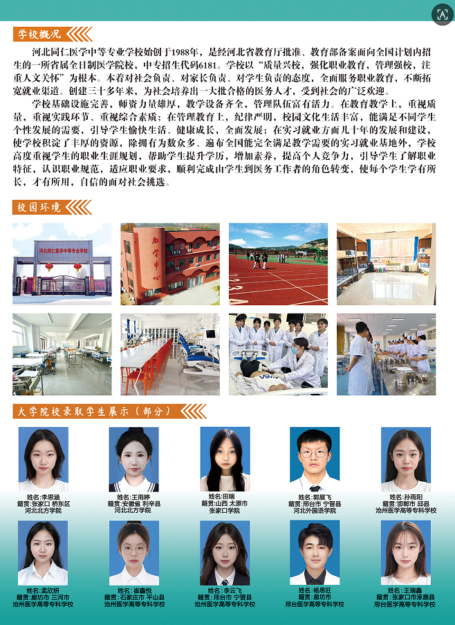 最新出炉|2026年河北同仁医学中等专业学校春季招生简章