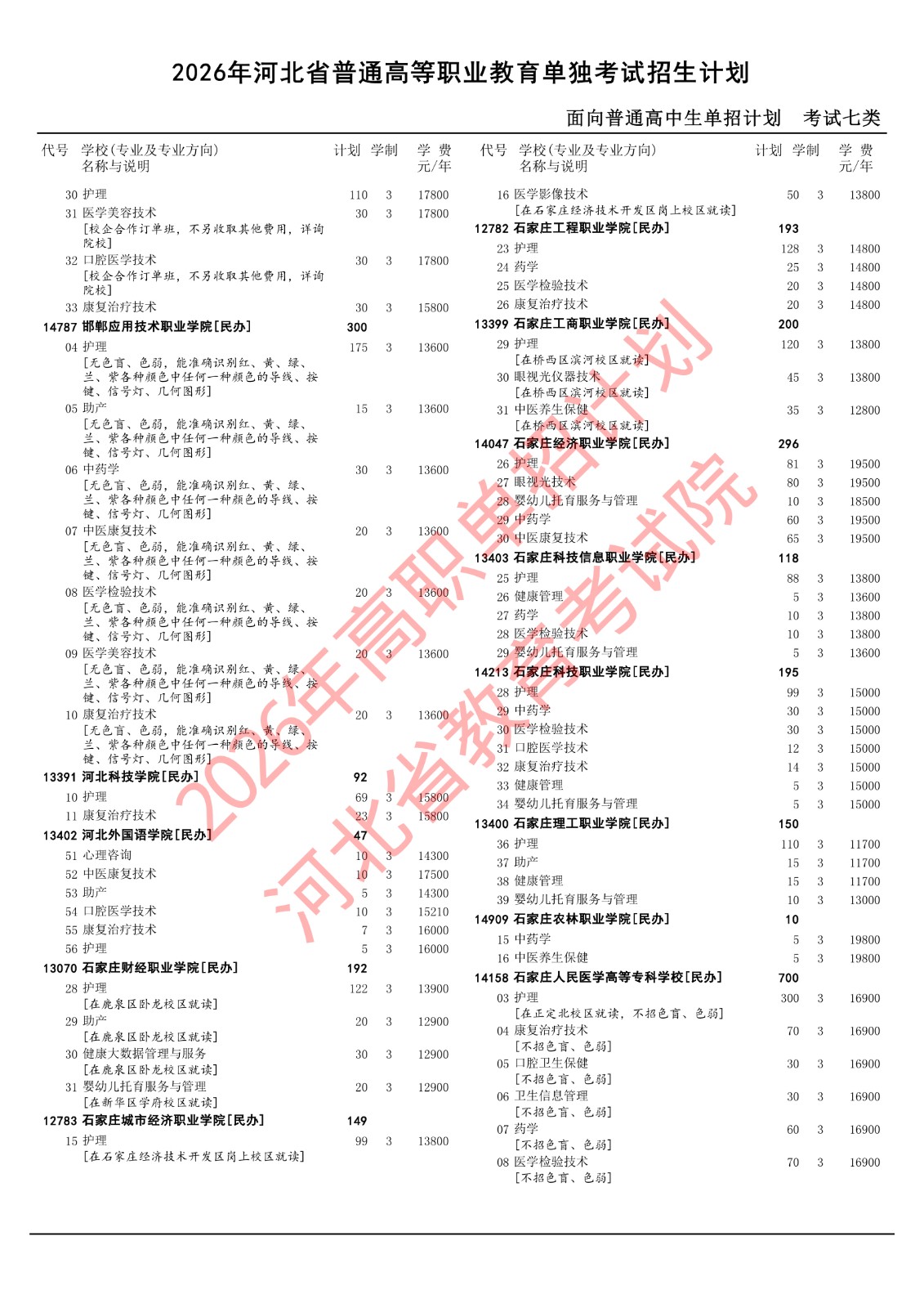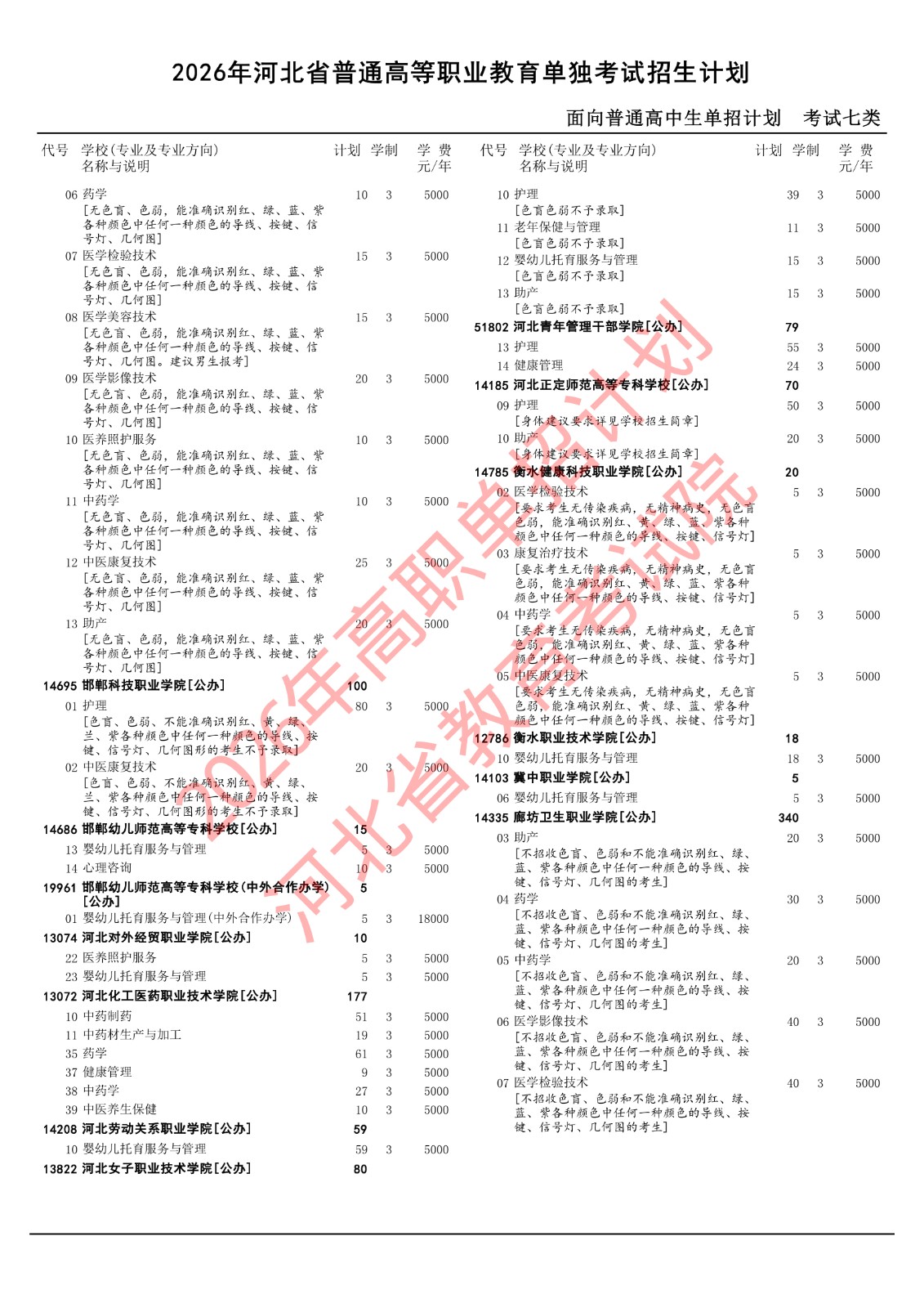 想考医学大专的同学注意啦!2026 年河北单招七类(医药卫生类)招生计划新鲜出炉!招生人数、院校专业、录取名额全都明确了!