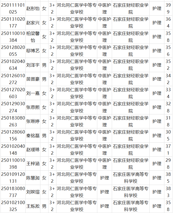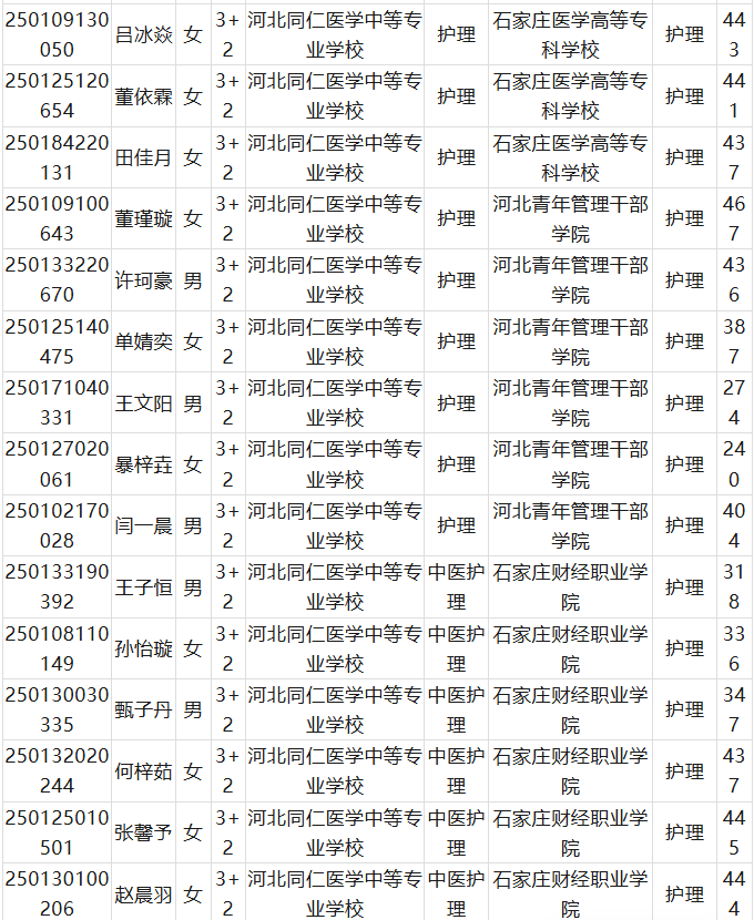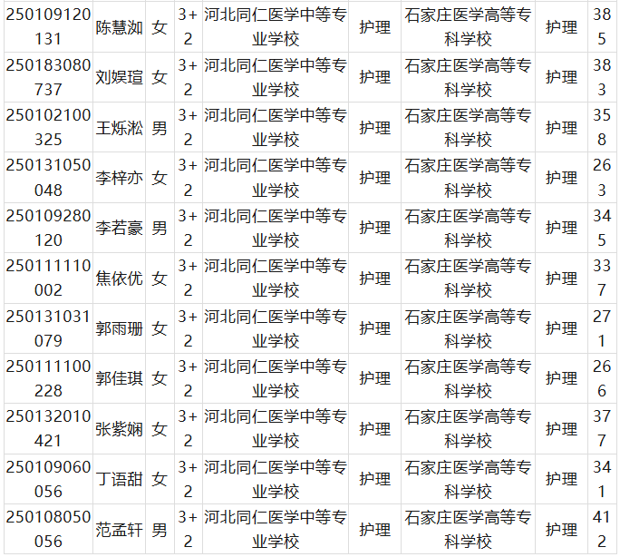 最后总结;河北同仁医学中等专业学校3+2中医护理石家庄财经职业学院相对分数比较低,最低分371分,3+2石家庄医学高等专科学校分数线最低是266分 。河北青年干部管理学院最低分是240分。