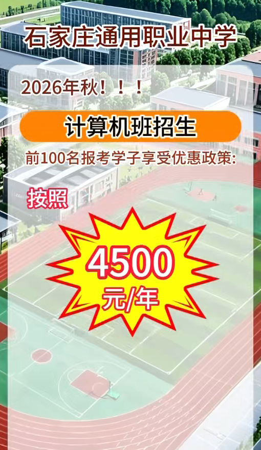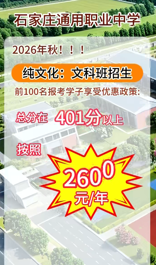 - 2026年石家庄通用职业中学(通用职高)前100名额报名更大优惠