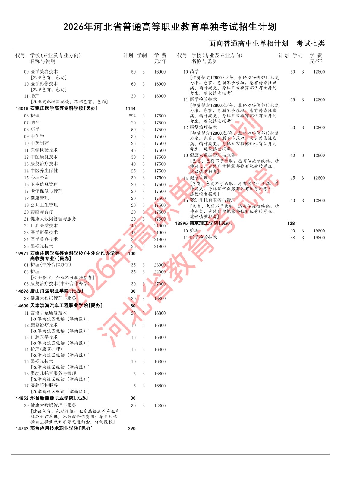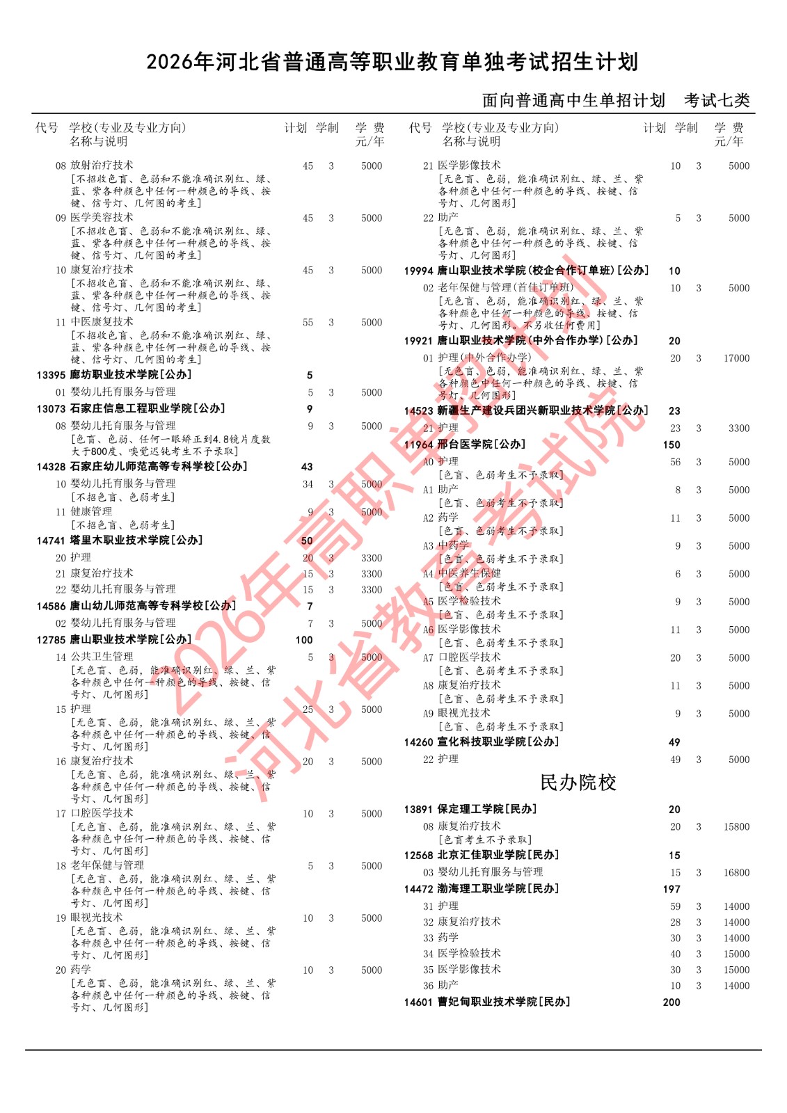 想考医学大专的同学注意啦!2026 年河北单招七类(医药卫生类)招生计划新鲜出炉!招生人数、院校专业、录取名额全都明确了!